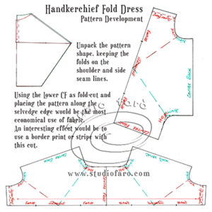 At last the detail for the Saturday #PatternPuzzle is here! My apologies for the delay to our usual posting but I had a little trouble with my graphics. It was a wonderful round of creative answers and clever solutions that finally solved this puzzle. Our Handkerchief Fold Dress is so named because it struck me that the construction of this dress is much like a handkerchief with the corners folded into the centre.