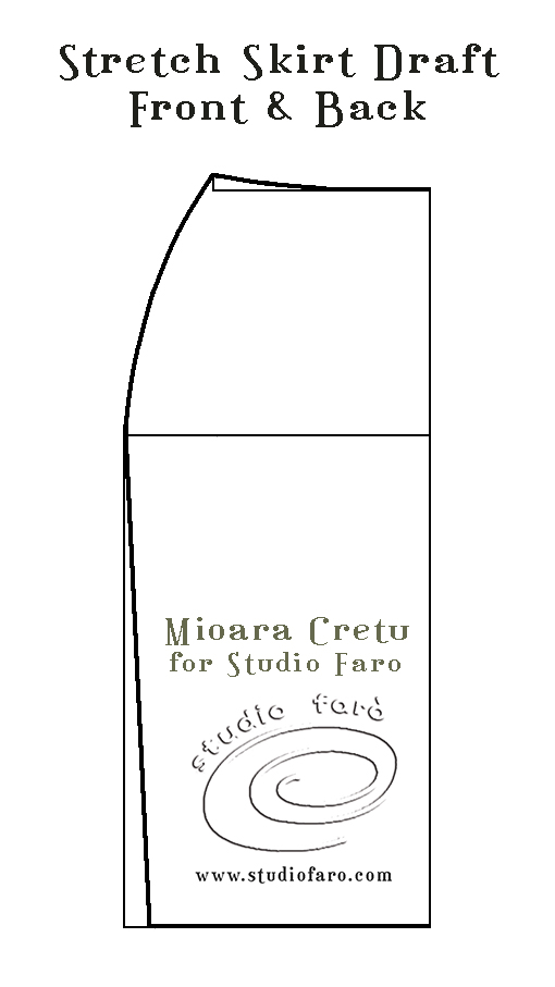 - Using your body measurements, minus 4-6cm negative ease, draft a basic stretch skirt block.