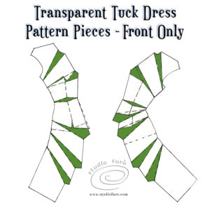 The altered pattern (front only) is set out below with the green areas showing the extra fabric involved in making the tucks. The extra fabric in the pattern is derived from dart transfer, and slash and spread, to add extra fabric where required. There is more detail about my method of drape pattern making here: My Drape Pattern Making Method