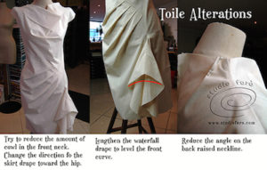 Toile or Muslin: An old French word meaning cloth and often applied to plain or twill weave linen fabric. Contemporary use of this work most commonly referrers to a prototype for testing the style, fit and balance of a block or garment.