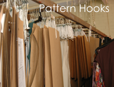 Pattern Hooks: Wire and cord pattern hanging hooks to keep individual patterns together on the clothing rail with the appropriate sample.